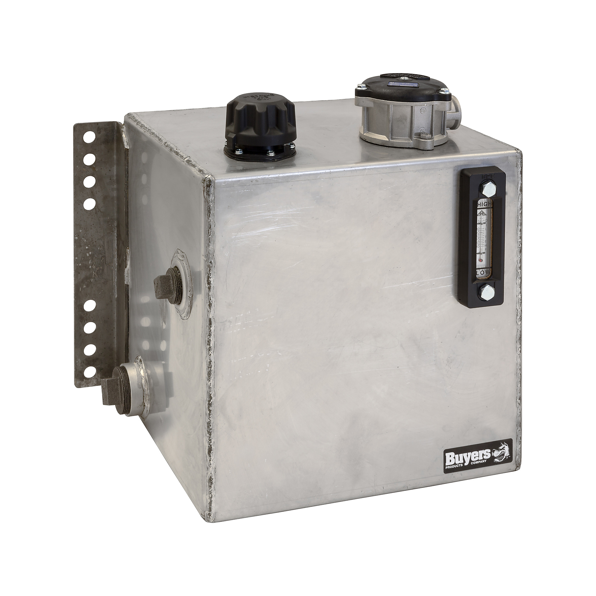 The 15 Gallon Stainless Steel Reservoir with Micron Filter from Buyers Products is made of high-quality 304 stainless steel with welded-on carbon steel mounting brackets. Its sleek, polished appearance will stand up to salt and weather for long-lasting use, making it great for winter spreader applications. The reservoir has several features for optimal fluid operation, including: – a quarter-turn chrome filler breather with a wire basket strainer – a sight fluid level and temperature gauge – an interior baffle between suction and discharge to aid in fluid cooling – a magnetic drain plug to aid in prevention of metallic particle contamination It comes pre-drilled for an included tank-mounted HFA5S series return filter. Choose from a 10 micron or 25 micron filter (shipped separately).