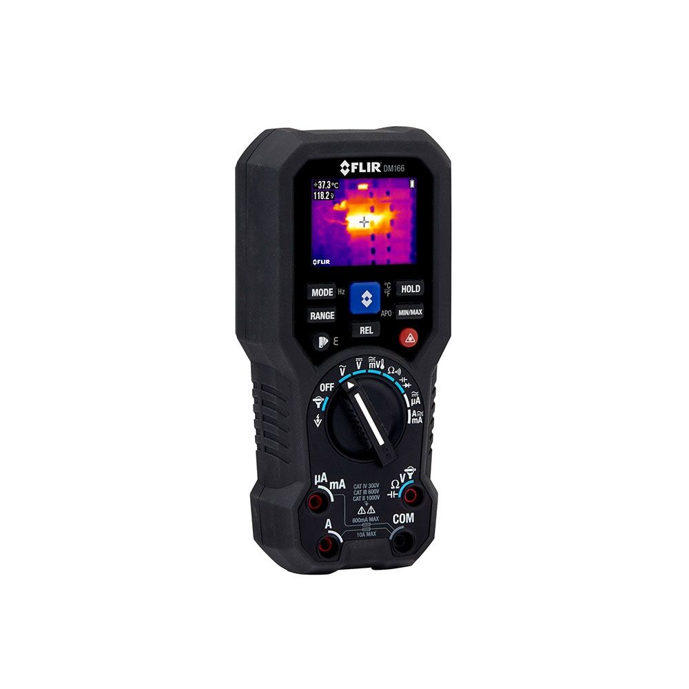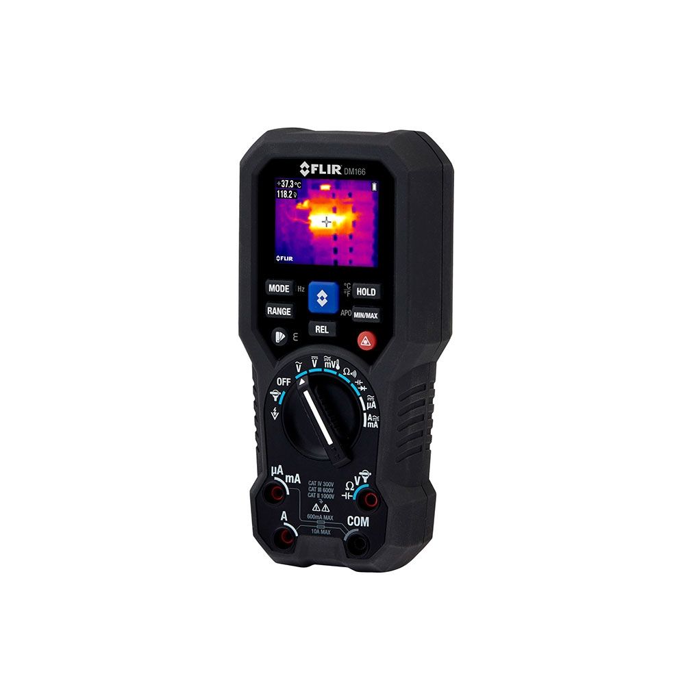 The FLIR DM166 is a must-have tool for commercial electricians, automation, electronics, and HVAC technicians. Featuring Infrared Guided Measurement (IGM) thats powered by a built-in 80 x 60 FLIR thermal imager, the DM166 visually guides you to the precise location of potential problems. It includes the essential measurement features you demand from a multimeter including True RMS AC/DC voltage and current, non-contact voltage detection, VFD mode, and more. The DM166 is the most affordable multimeter with built-in thermal imaging to date.