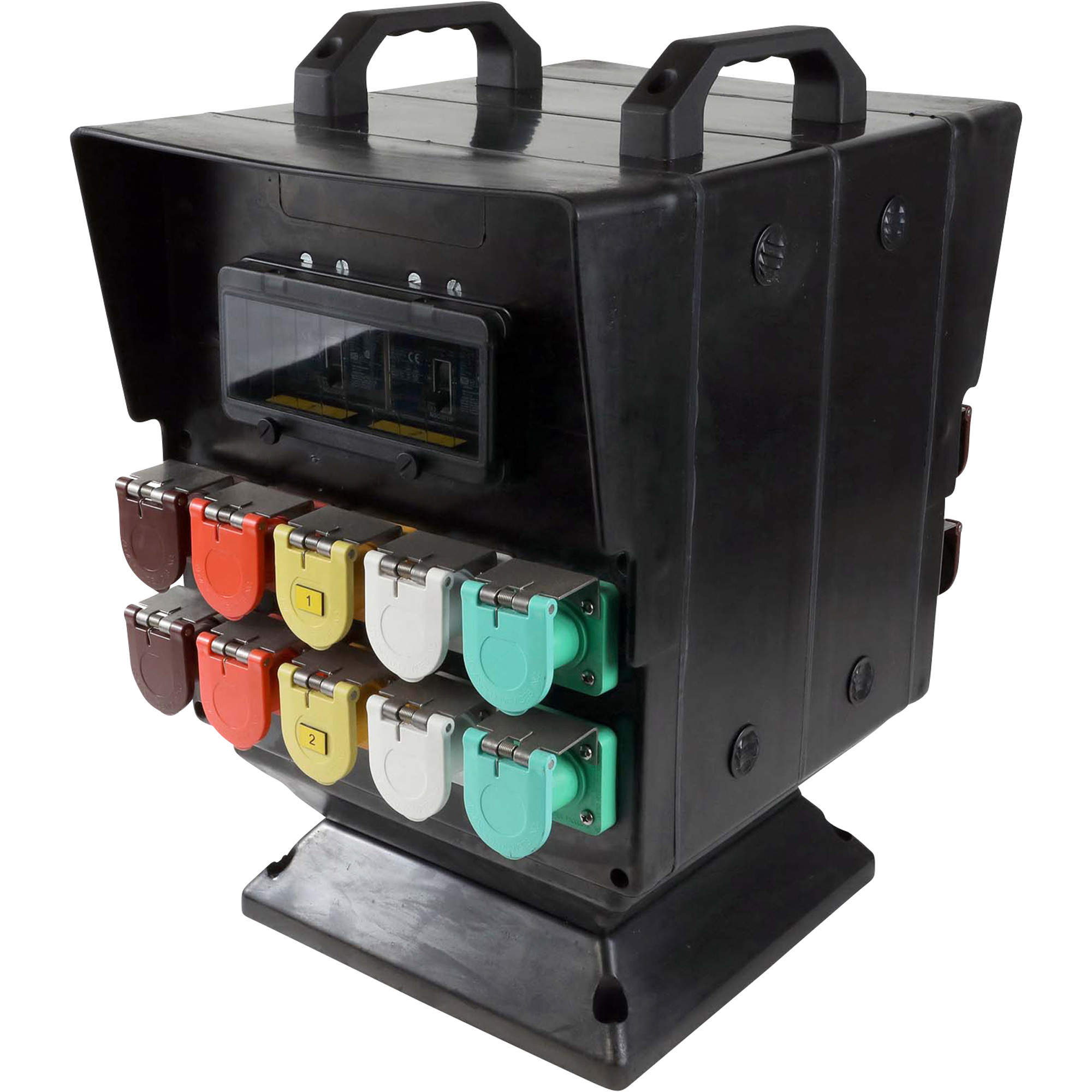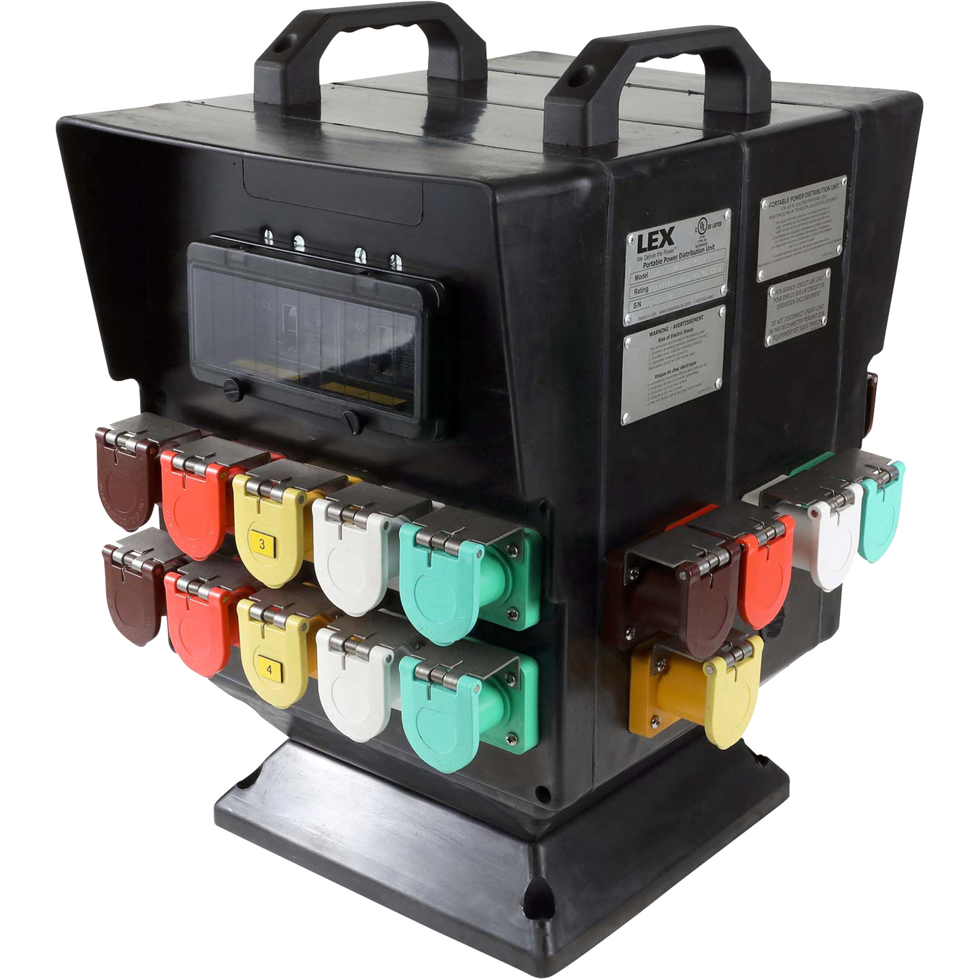 This Generac Portable Power Distribution Box breaks 400 Amp, 3-phase, 4-pole, 5-wire power into four sets of 100 Amp, 3-phase, 4-pole, 5-wire overcurrent protected circuits to power shelters, live events and other portable distribution units.