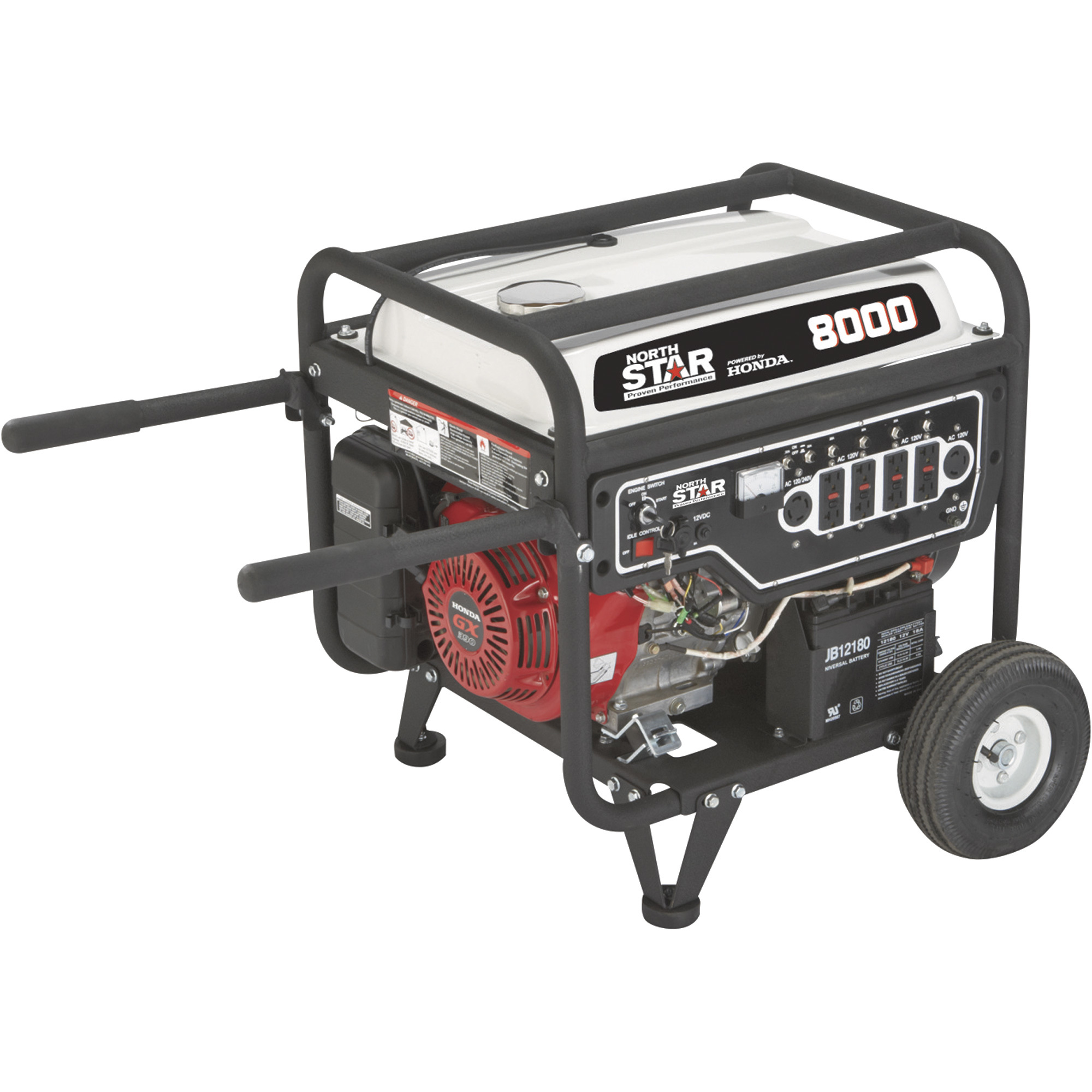 NorthStar Portable Generator with Honda GX390 Engine — 8000 Surge Watts, 6600 Rated Watts, Electric Start, CARB Compliant