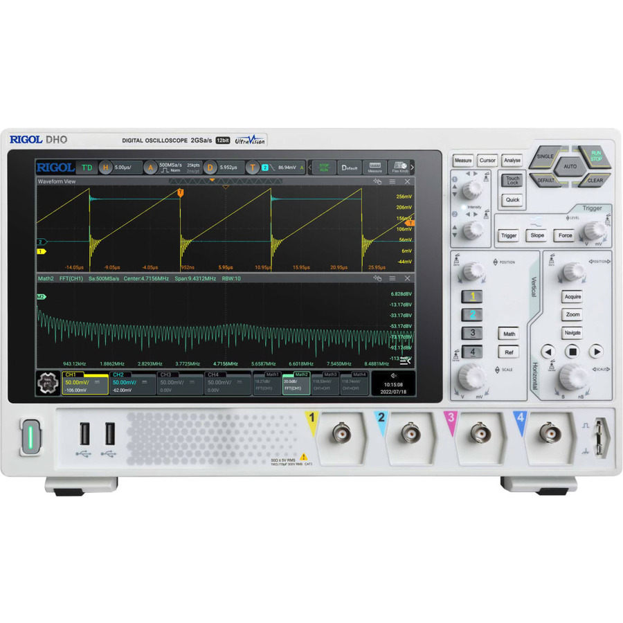 RIGOL DHO1204 Digital Oscilloscope: 4-channel, 200 MHz bandwidth, 1 GS/s sample rate, 50 Mpts memory depth, 12-bit resolution, DHO1000 Series.
